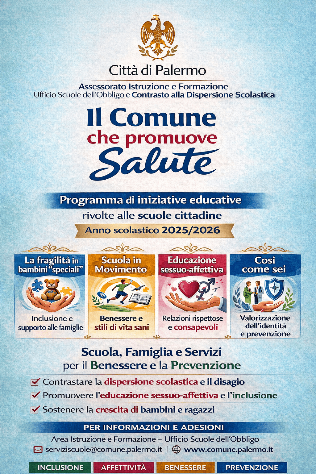 L’Assessorato all’Istruzione e Formazione del Comune di Palermo, attraverso l’Ufficio per la Scuola dell’Obbligo e il Contrasto alla Dispersione Scolastica, annuncia il proprio sostegno al progetto Sport senza Frontiere. Si tratta di un’iniziativa rivolta a minori tra i 6 e i 17 anni in condizioni...